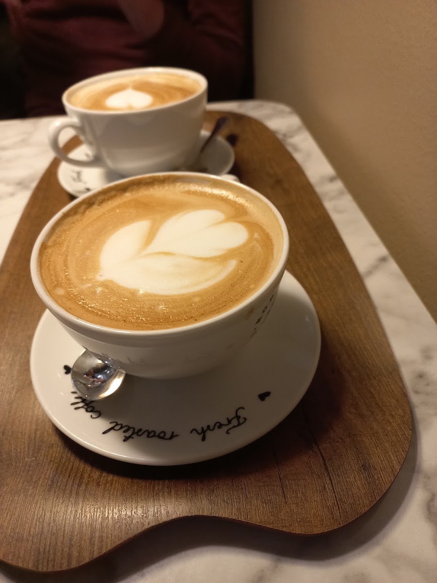Hello, we are those two girls, one girl who was in shorts, although it was -2 and snowing outside, and the second one who was drinking tea from a huge cup. You have a great place, everything is delicious, cool and not expensive. The staff is cool, and if I knew Finnish well, I would have done a stand-up with the barista (the barista's name is Arjan). I recommend it if you want to drink tea at random, because the barista is "caring". But seriously, the place is cool, I recommend it.